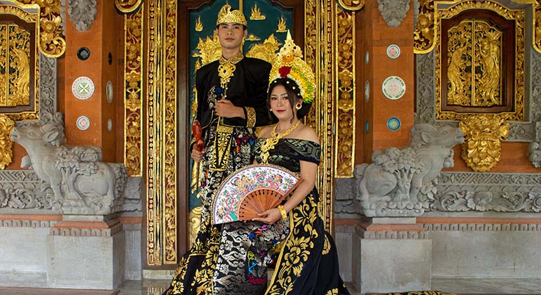 Experience a romantic photo session dressed in traditional Balinese attire, complete with professional makeup and styling. The photoshoot takes place around beautiful traditional Balinese architecture, capturing your unforgettable love story in the heart of Bali [START FROM 1.350.000 / COUPLE]