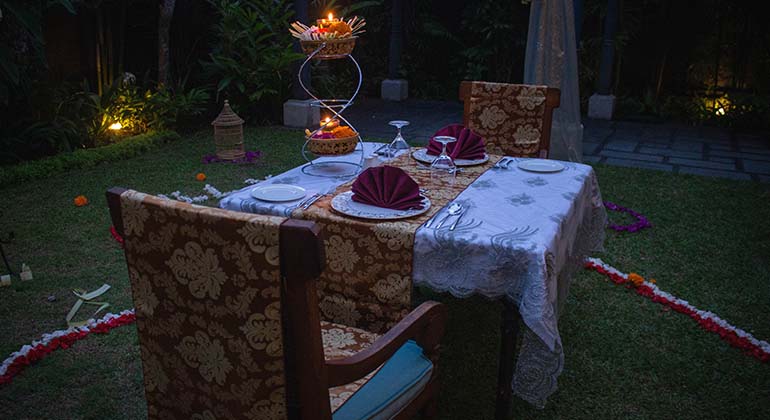 Indulge in an elegant and intimate dining experience with your special someone. Under the soft glow of candlelight, savor a deliciously curated menu, perfectly paired with a fine selection of wine to elevate your evening. Let the enchanting ambiance, exquisite flavors, and smooth wine create a memorable night of love, laughter, and connection. Because every special moment deserves a perfect toast [START FROM IDR 2.100.000 / COUPLE]