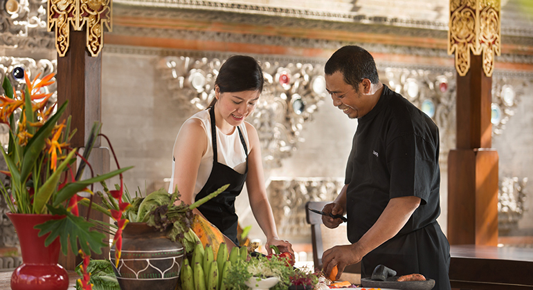 Royal Cooking ClassBali is rich with its traditional recipes that can be explored and studied with our Chef. Started from a Traditional Morning Market survey, where kalian juga akan kita ajak bersama langsung belanja di pasar pagi tradisional untuk nantinya akan kita masak. Our Chef will take you to the traditional experience of how our Balinese food is made and end it on the table. [IDR 1.500.000 NETT / COUPLE]