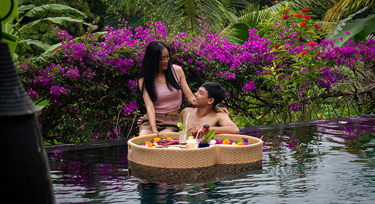 Indulge in a luxurious Floating Breakfast with an authentic Balinese touch Whether you're treating yourself or sharing the moment with loved ones, our beautifully arranged breakfast experience is the perfect way to start your day in paradise [IDR 600.000 NETT / COUPLE]